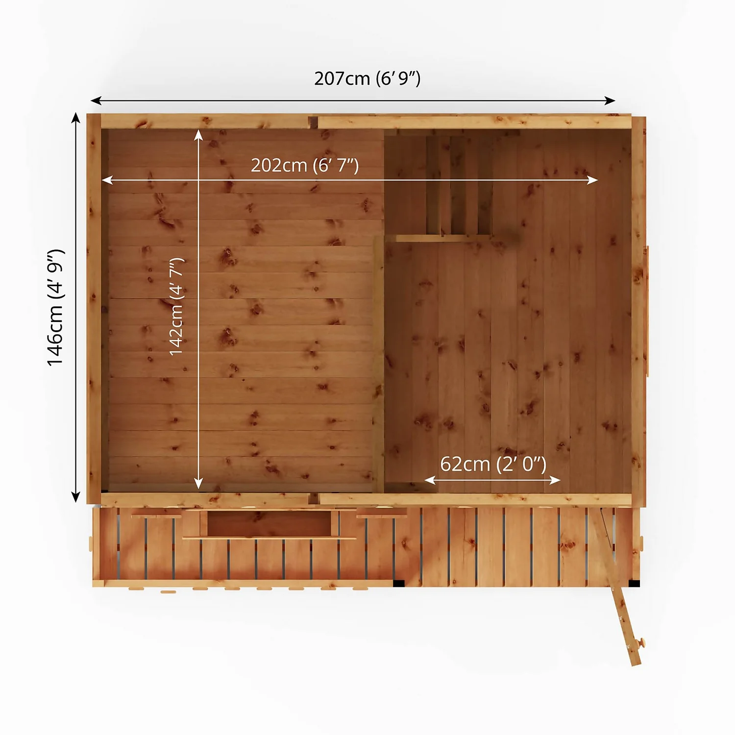 - Tongue & Groove Roof and Floor – Heavy duty interlocking boards create a premium, strong and robust finish