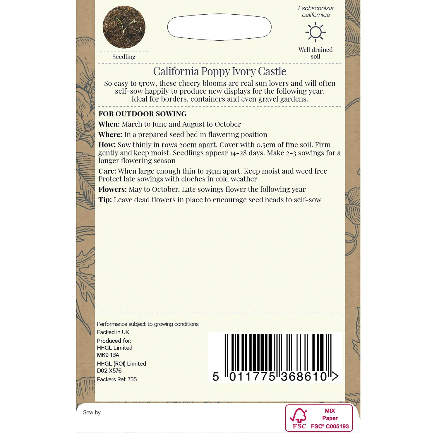 | Guarantee | Standard seeds, UK rules and standards. Performance subject to growing conditions. |