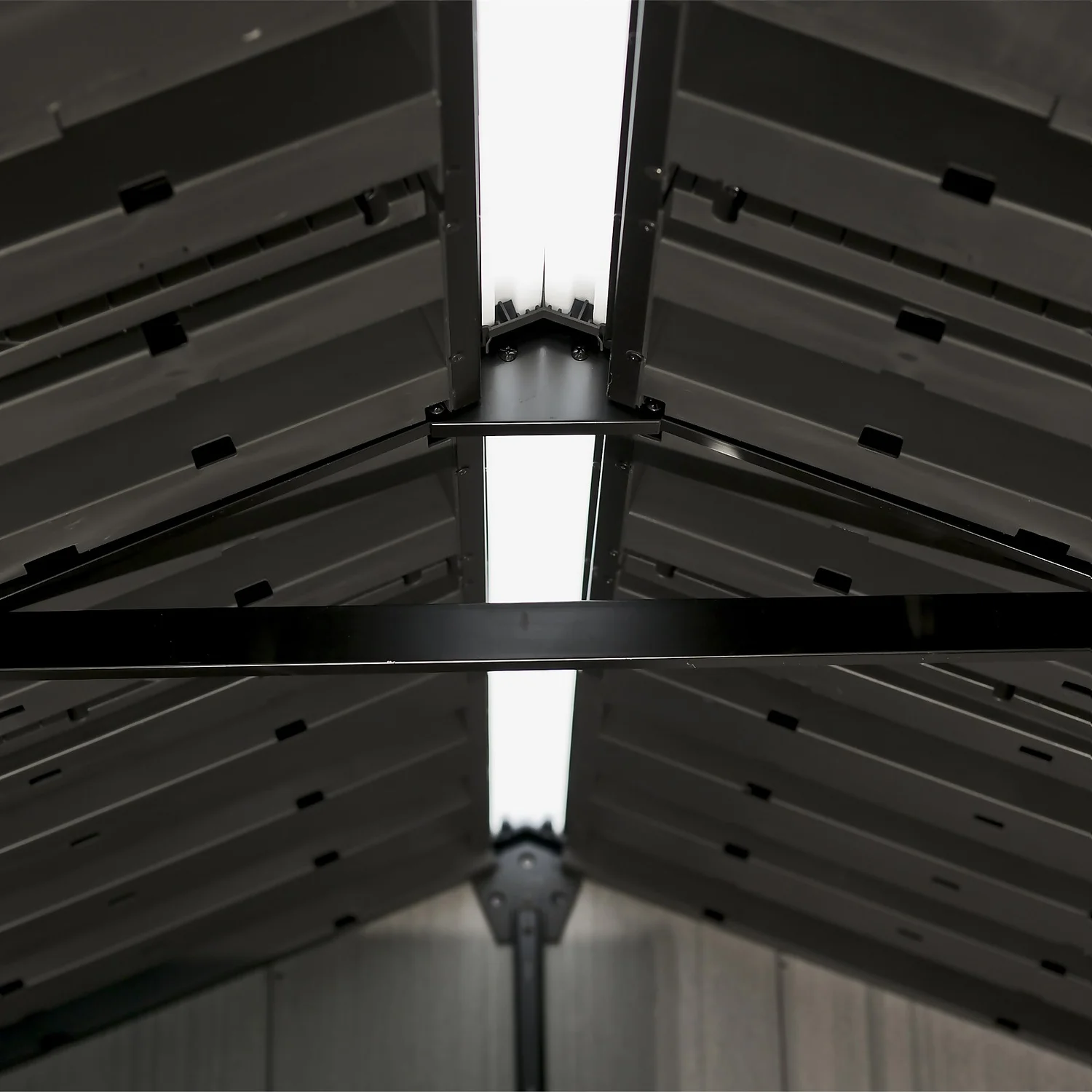Thanks to its DUOTECH wood-texture walls, this shed is fully customisable – you can paint, drill and cut as you wish. Sturdy double doors make getting things in and out a breeze and the high ceiling lets you walk around inside with comfort.
