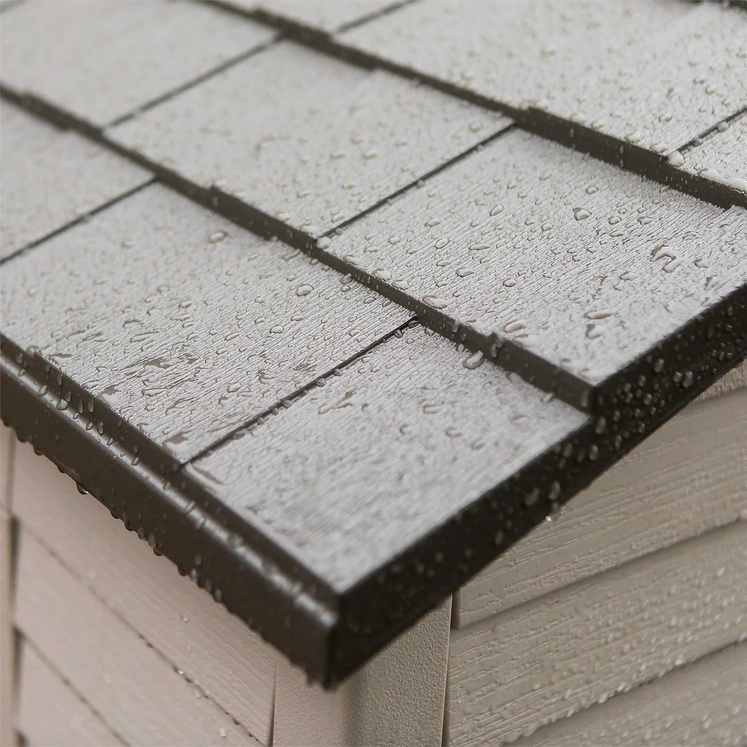 Lifetime’s 7-foot wide outdoor storage sheds have several innovative features, including a skylight that runs the entire length of the roof to maximize natural lighting. They also include single-hinged double doors that open nearly 180 degrees and lock closed, a slip-resistant polyethylene floor, and low-maintenance, steel-reinforced construction.