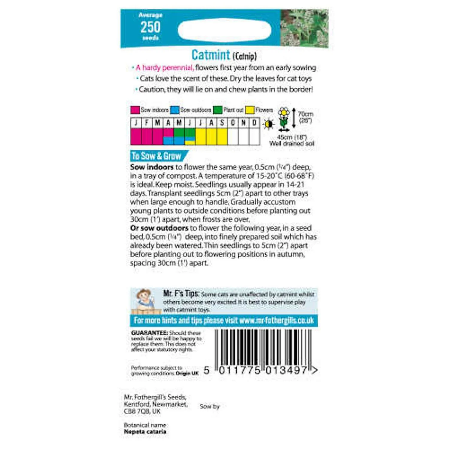 Catmint (Nepeta cataria) is also known as Catnip and cats just adore the scent. Beds and borders.